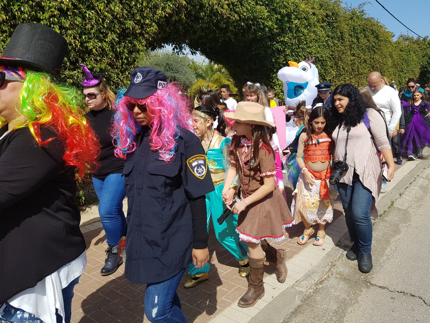 לתהלוכה שיצאה מביה"ס נוף ים א' הגיעו מחופשים חברת המועצה הממונה על החינוך הבלתי פורמלי מיריי אלטיט, עובדי מנהל החינוך, מנהלת מרכז קהילתי ברנע, סופי חוטובלי פנחס עם מועדון הגמלאים של מרכז קהילתי ברנע וצוות המתנס.
