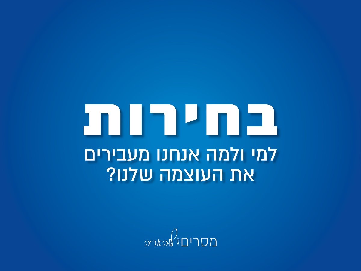 מתוך כך ארצה להביא אליכם מבט על הבחירות ועל הבחירה שכל אחד ואחת מאיתנו נדרשים ליצור בתקופה נוכחית, על מנת לשקם את החברה הישראלית ולהצעידה אל מסלול הרמוני.