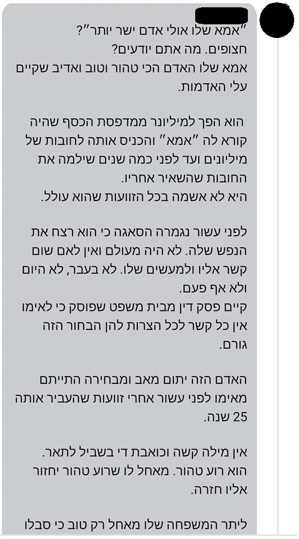 "הנוכל, מתחזה, עוקץ, גם פוגע בנשים תמימות שחושבות שהוא יהודי" – טען אחד המתלוננים שפוצץ את הסיפור לכאורה בפייסבוק. "הוא עוקץ אותם ואת משפחתם וסביבתם, כל יום יוצרים איתי קשר עוד ועוד נעקצים ונשים שנפלו ברשתו, הן מבקשות להישאר בעילום שם בגלל הבושה אבל הדברים שהוא עשה חייבים לקבל חשיפה!".