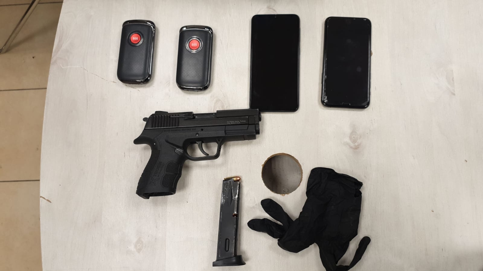 במהלך המעצר נתפס אקדח, מחסנית עם הכדורים ואלפי שקלים שהיו אמורים לשמש כתמורה לאקדח.