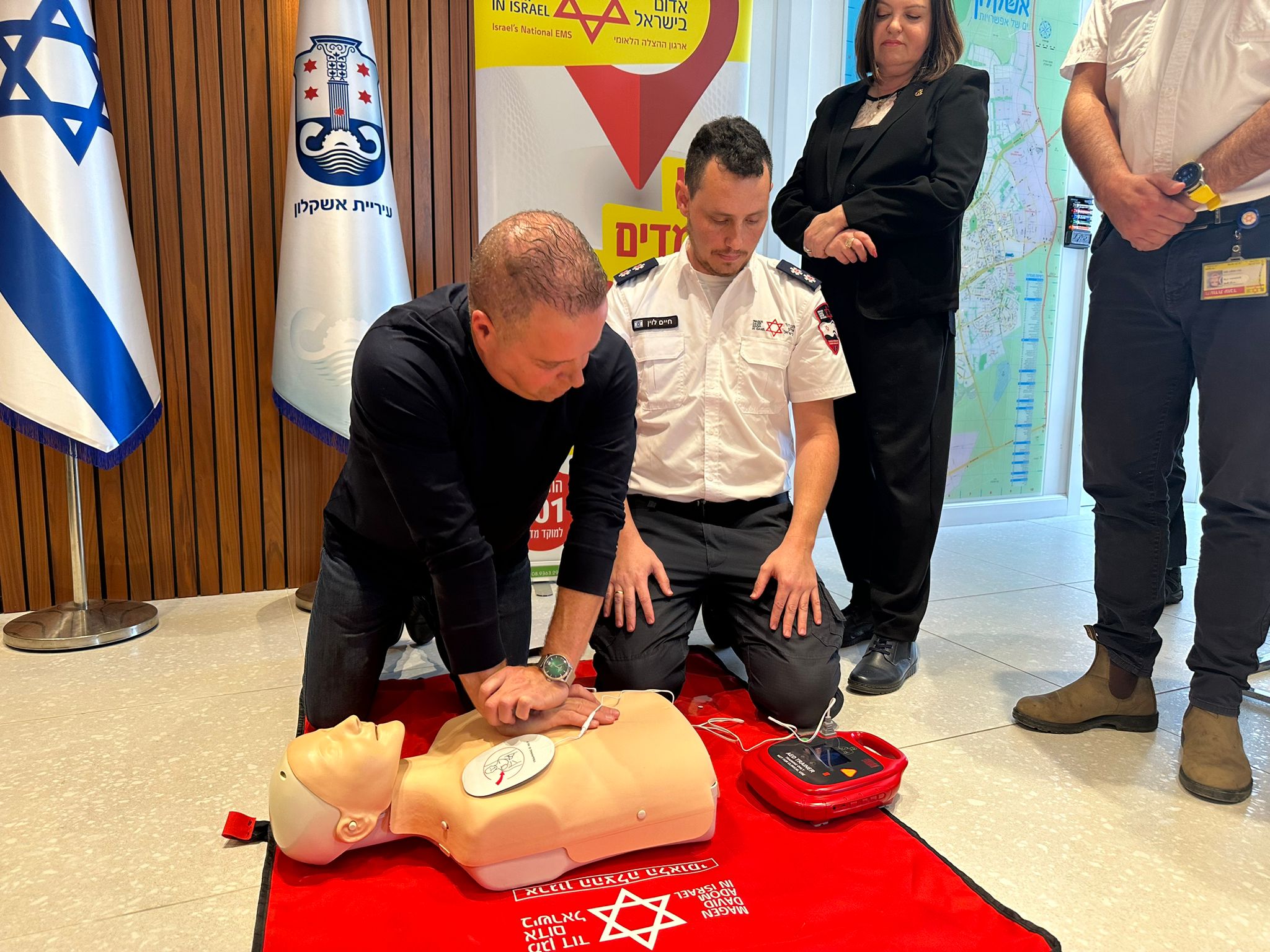 *מנהל מרחב לכיש במד"א, חיים קרדי:* "אנו מודים לעיריית אשקלון ולעומד בראשה על שהקדישו מזמנם ללמוד כיצד להציל חיים במרחב הציבורי מבלי ידע רפואי קודם. בזכות הידע שרכשו היום נציגי העירייה - ניתן למנוע אסון אמיתי. אני מזמין את תושבי העיר ללמוד אודות המכשיר המופלא שפעם אחר פעם, מציל חיים בישראל".