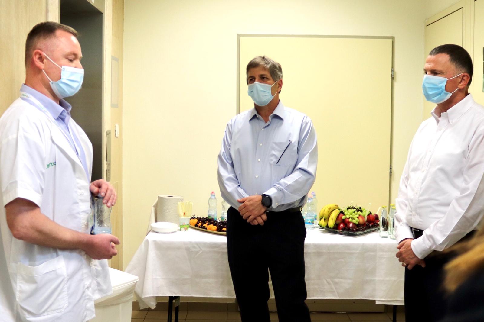 שר הבריאות ח״כ יולי אדלשטיין, סגן שר הבריאות ח״כ יואב קיש, ד"ר רומן קומורוב, מנהל מרפאת כללית נווה זאב באר שבע.