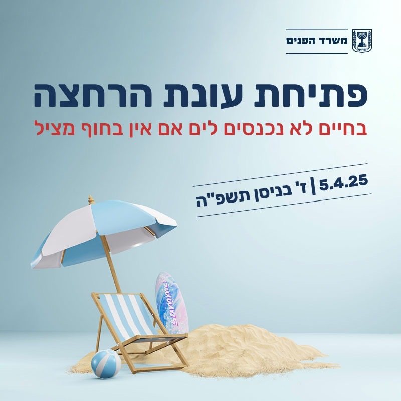 משרד הפנים האגף לחופי רחצה מודיע: 158 חופי רחצה עם שירותי הצלה יפתחו בסוף השבוע הקרוב עם פתיחת עונת הרחצה תשפ”ה – 2025
