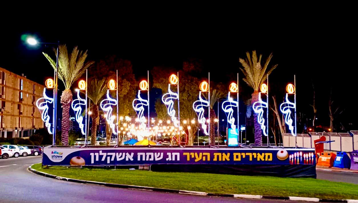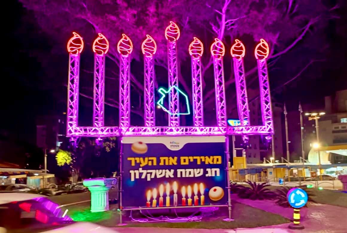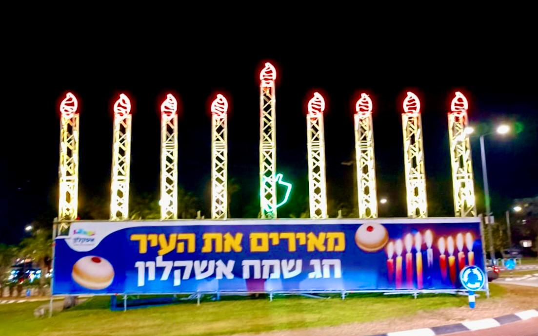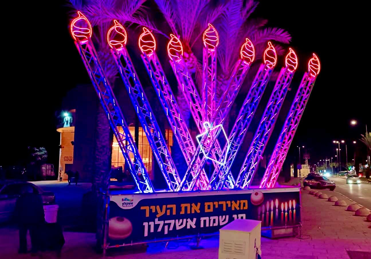 אשקלון לובשת חג: חנוכיות ענק מרהיבות הוצבו ברחבי העיר לרגל חג החנוכה