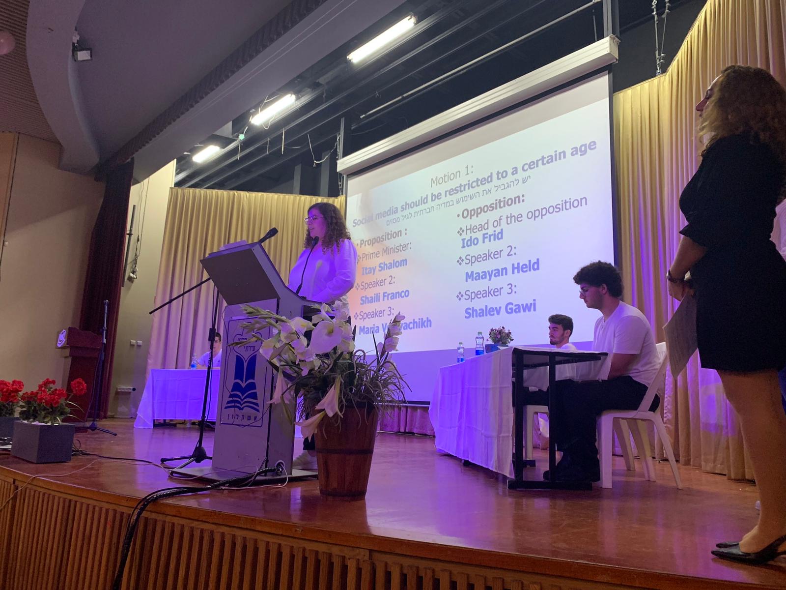 בשבוע שעבר התכנסו תלמידי שכבה י' באולם האודיטוריום לאירוע החגיגי, ובזה אחר זה, עלו תלמידי השכבה, בבית הספר, לפודיום, שם פרסו את משנתם במגוון רחב של נושאים בוערים בשפה האנגלית בהם, אם לעודד נשיאת נשק לצרכי ביטחון בארץ? האם יש להגביל את השימוש במדיה החברתית רק לגילאים מסויימים? הנחיית האירוע הייתה כולה באנגלית כולל כל המצגות שהוצגו .