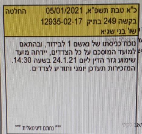לאחר שהשופט בבית המשפט המחוזי בתל אביב, בני שגיא, קיבל את בקשתו של איתמר שמעוני, ראש עיריית אשקלון לשעבר, לדחות את הדיון בעניינו עקב כך שנחשף לחולה קורונה בסוף החודש שעבר, ביקש השופט מסנגורי הנאשמים לאשר את הדחיה והם אכן אישרו והדיון שהיה אמור להתקיים ביום חמישי הקרוב, ל -24/1/21 בשעה 14:30.