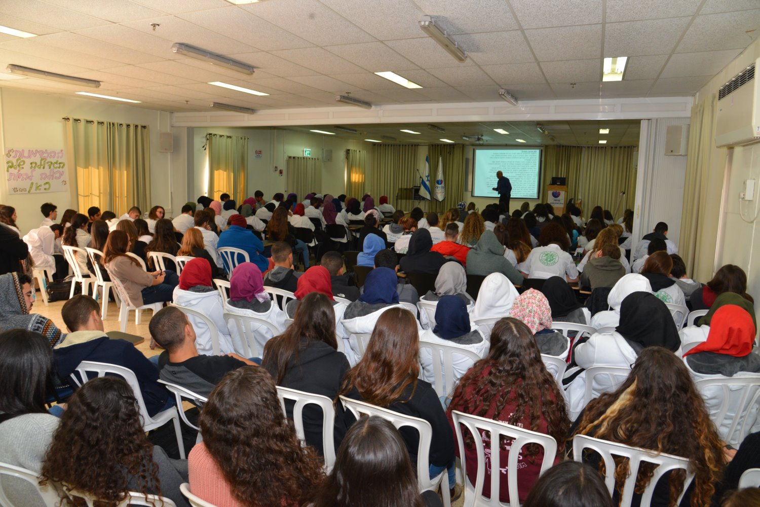 מנהל בית החולים ברזילי, הרצה בפני תלמידים שלומדים במגמת "בריאות", במסגרת שיתוף פעולה עם הקהילה – המרכז הרפואי ברזילי מוביל זו השנה החמישית שת"פ עם בתי הספר.