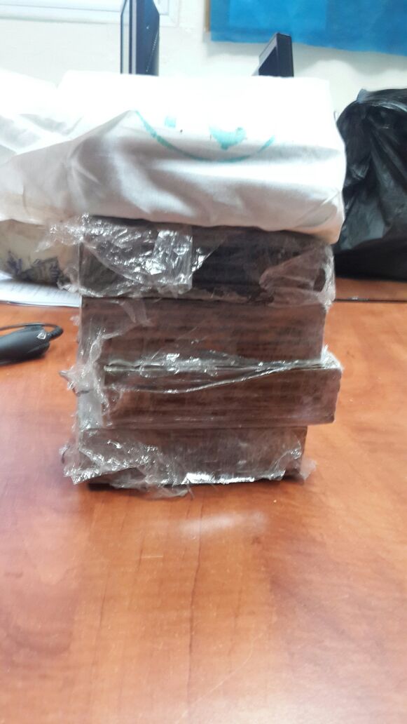 הרכב הובא על נהגו לתחנת המשטרה באשקלון שם ערכו הבלשים חיפוש מדוקדק בסיומו איתרו הבלשים בדופן הדלת האחורית 27 "סוליות" של חומר החשוד כסם מסוג חשיש במשקל של כ 3 ק"ג.
