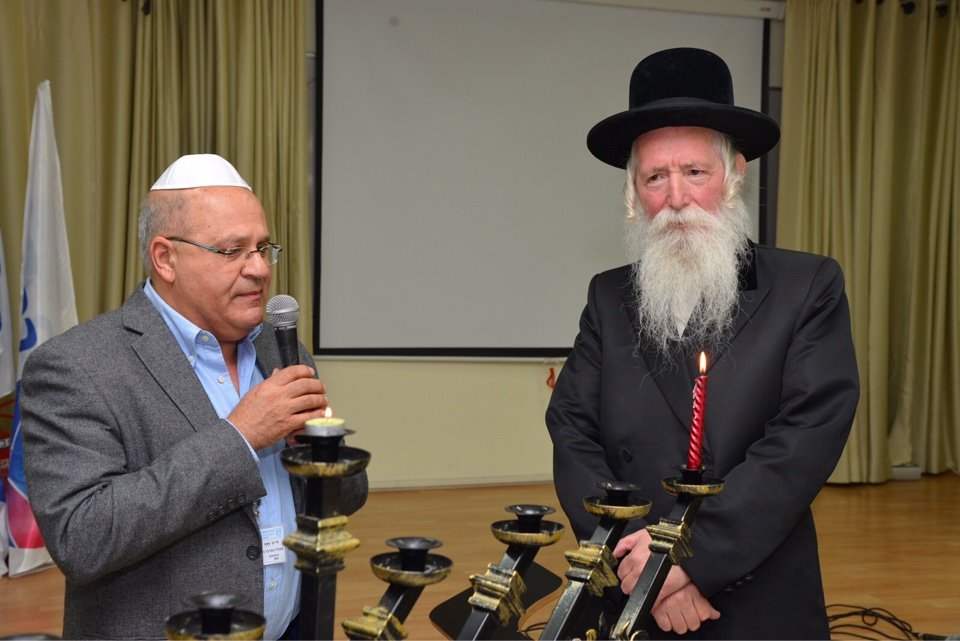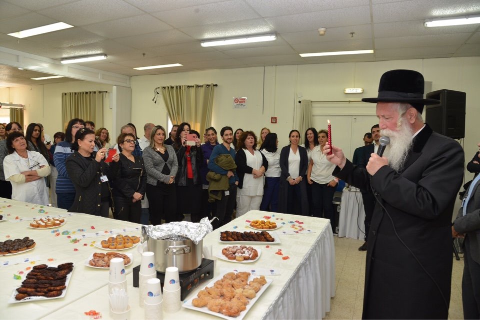 ד"ר חזי לוי, מנהל בית החולים והרב של מגדל העמק, הדליקו בנוכחות עובדי בית החולים את הראשון