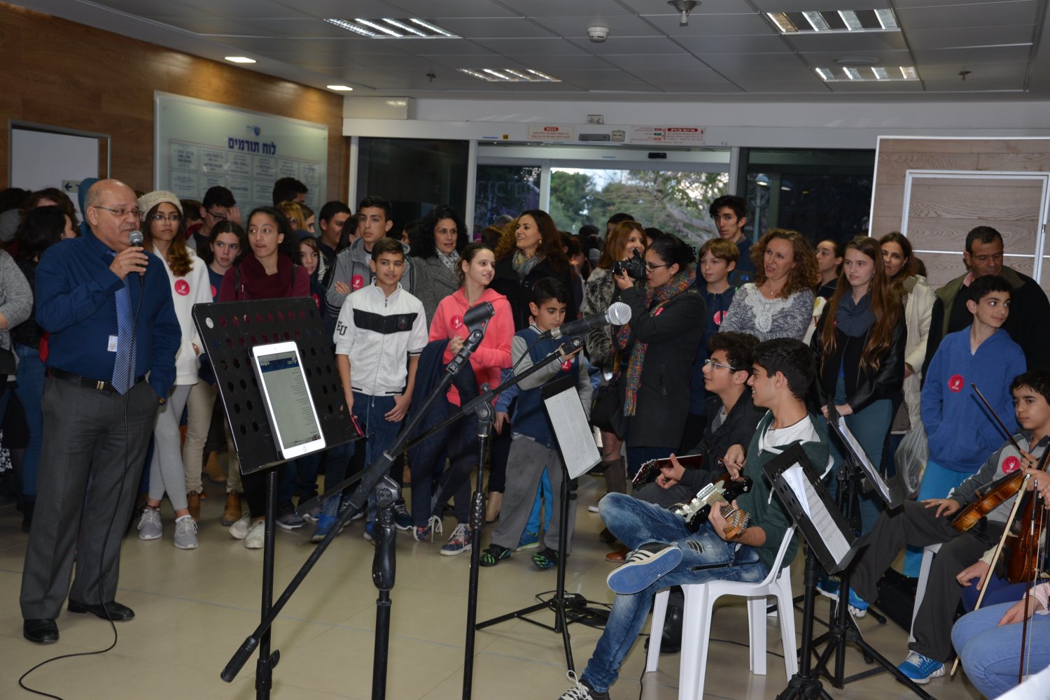 ביום חמישי שעבר, הושק המיזם במבואת בית החולים. הילדים המוכשרים פרסו את כלי נגינתם ונתנו את קולם גם בזמר, כל זאת במעמד ד"ר חזי לוי, מנהל בית החולים ובניצוחו של המורה, משה לבר, שאף מנצח על מקהלת בית החולים.