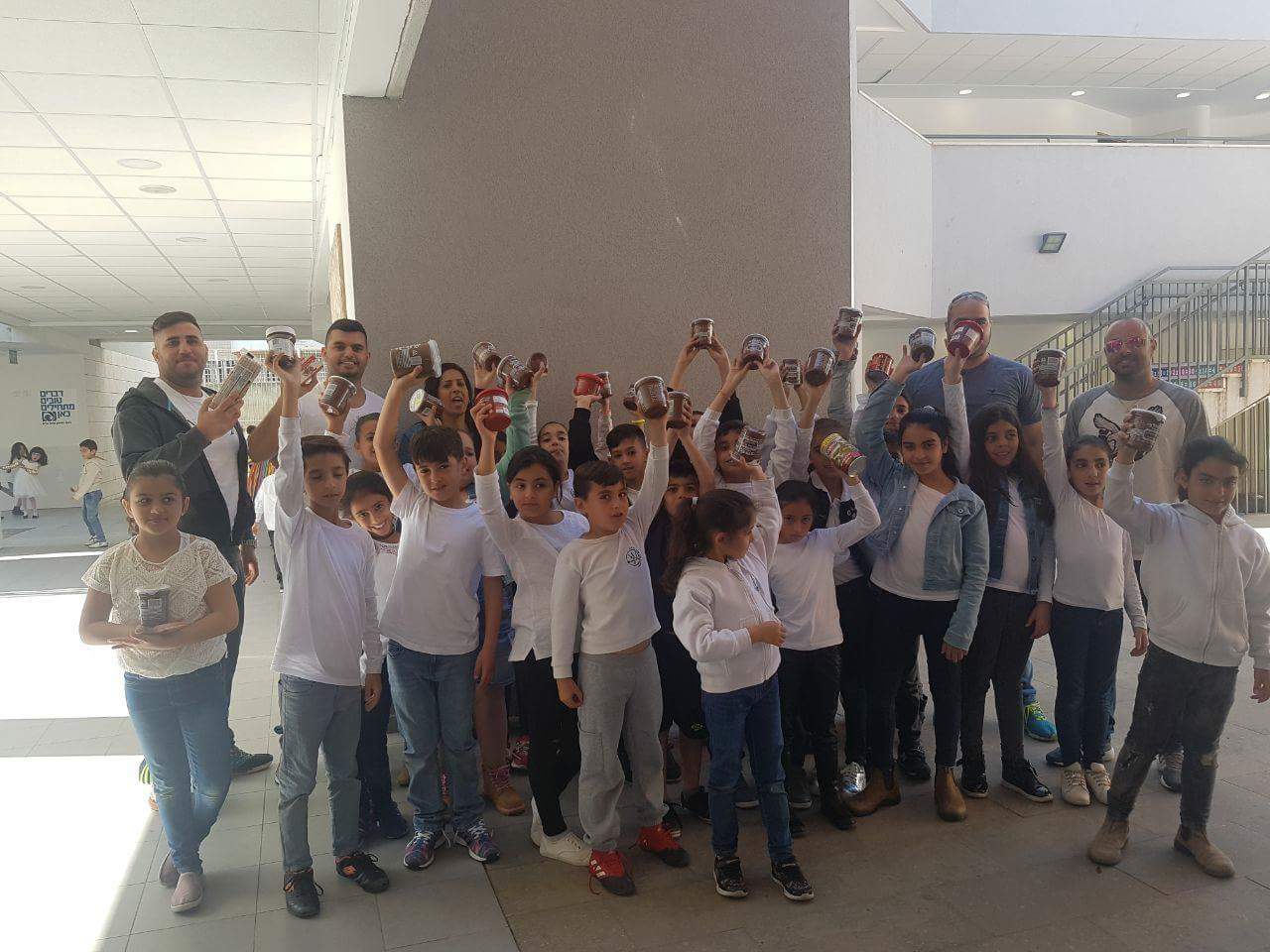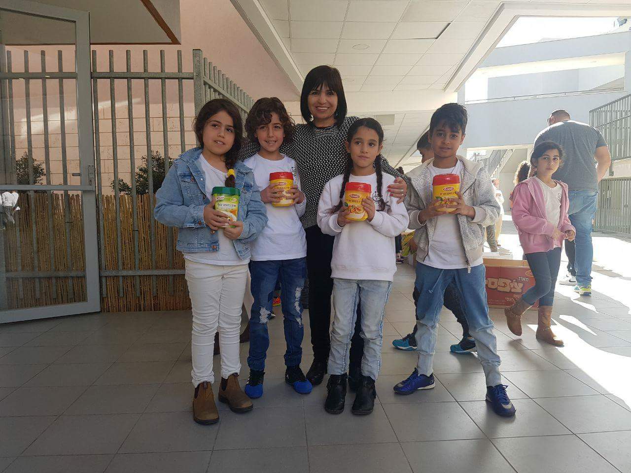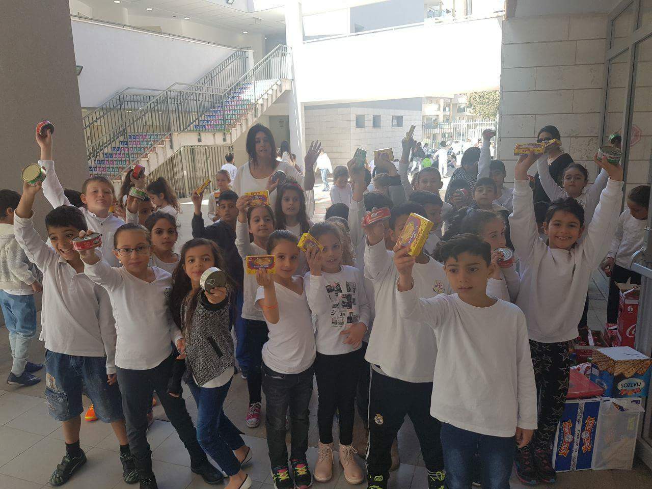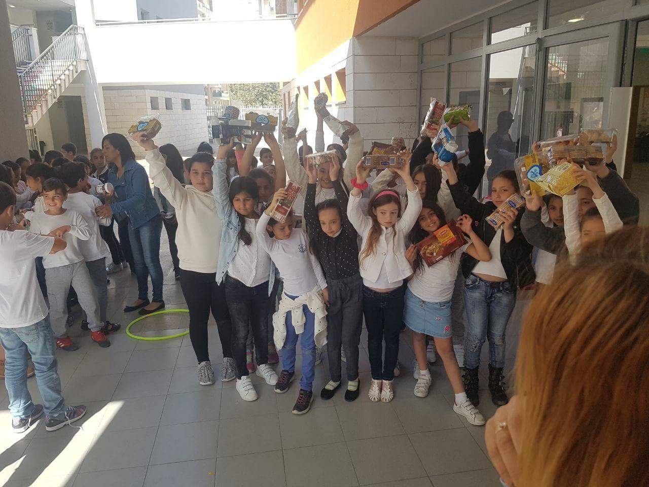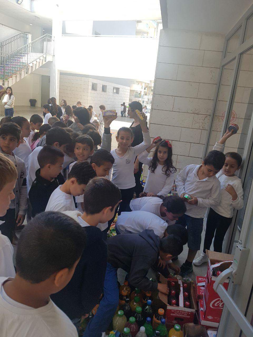 ילדי בית הספר אספו מוצרים והכינו חבילות כדי להעביר אותם למשפחות.