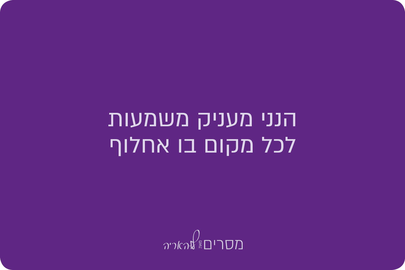 אנחנו נרגיש ונחווה את היום יום שלנו באופן אחר, שמחים יותר, מחוברים יותר, לעצמנו, למה שמסביבנו. חשים שהחיים עוברים דרכנו במלוא עוצמתם. נזכור את הסיבה שלנו, ותהיה לנו מוטיבציה לפסוע לאורה.