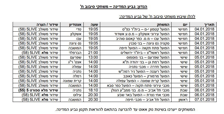 פורסמו הימים ושעות משחקי גביע המדינה בכדורגל