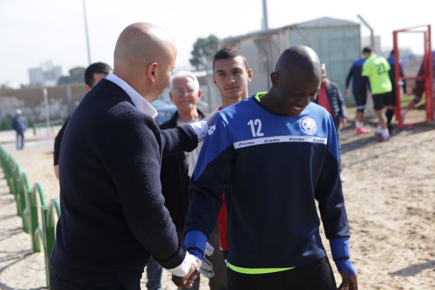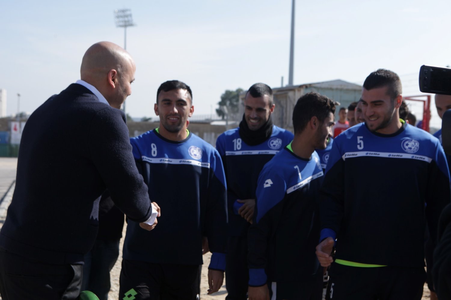 הבוקר (שני) הגיע ראש העיר, איתמר שמעוני, לצפות באימון של שחקני 'הפועל אשקלון' באיצטדיון העירוני. ראש העיר נפגש עם מאמן הקבוצה, יובל נעים, שמע ממנו ומהשחקנים על תחושותיהם לקראת עלייתם לרבע גמר גביע המדינה, וברך אותם על ההישגים היפים אליהם הגיעו במשחקים האחרונים. צילום: תומר שונהם הלוי