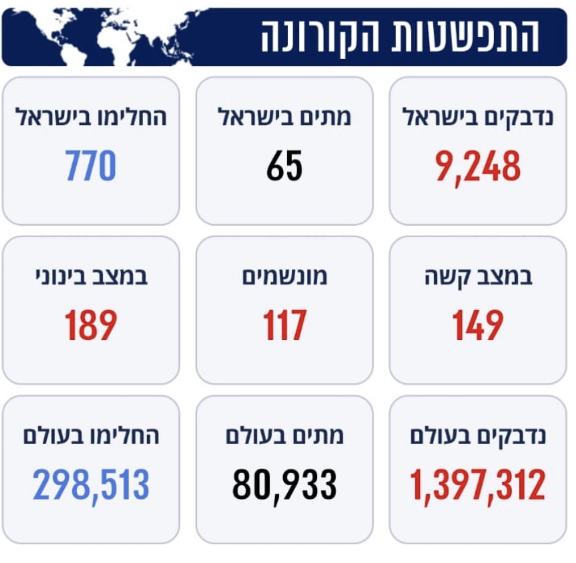 הערב במדינת ישראל יש 9,248 נדבקים.