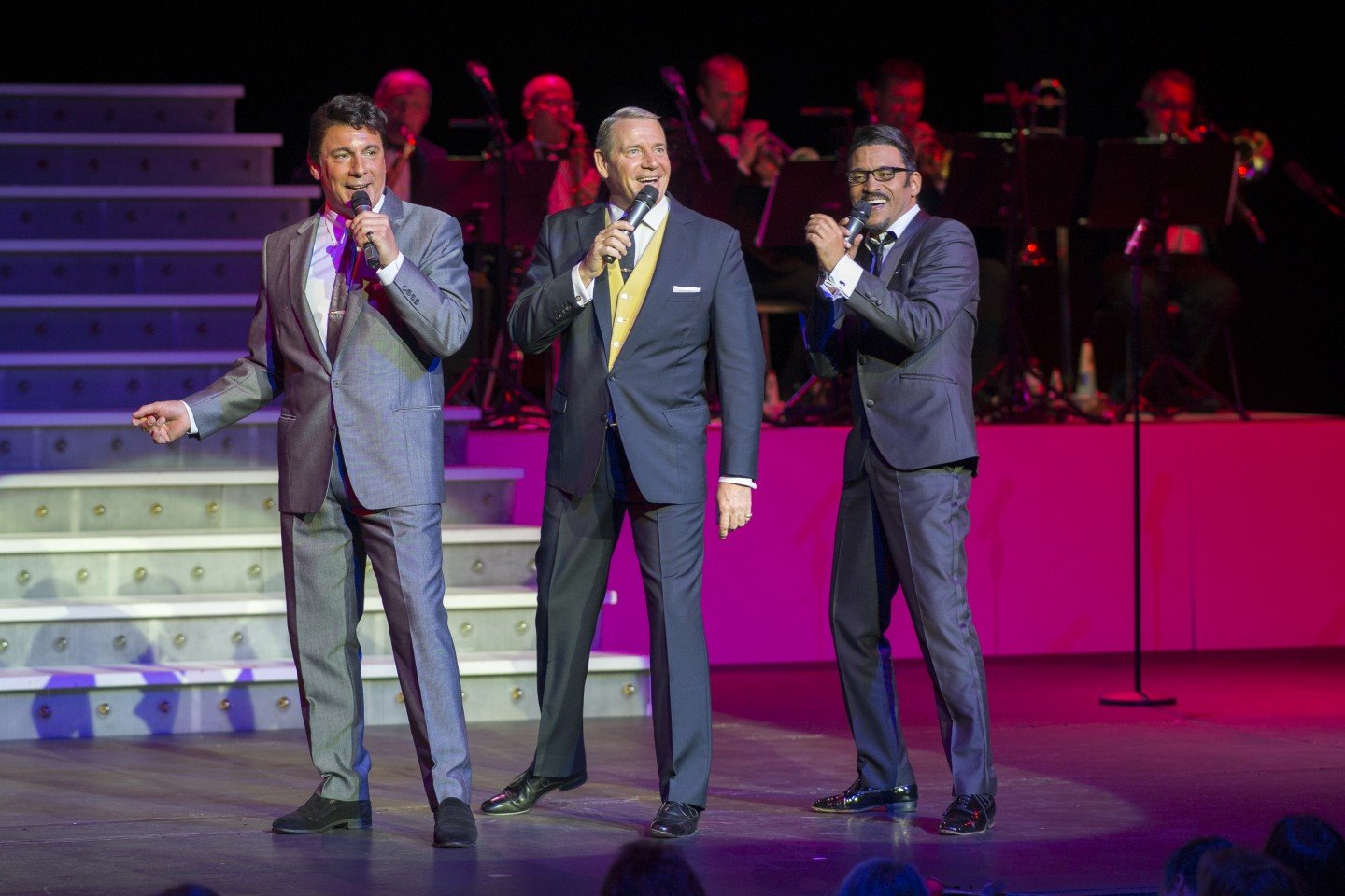 המופע סינטרה וחברים מבוסס על להיטיו הרבים של פרנק סינטרה ושל שניים מחבריו המוסיקליים סמי דייויס ומרטין דין שיחדיו כונו "חבורת העכברושים" (שכללה גם את הזמרים פיטר לאופורד וג'ואי בישופ), ושירים של השניים יבוצעו גם כן במופע.
