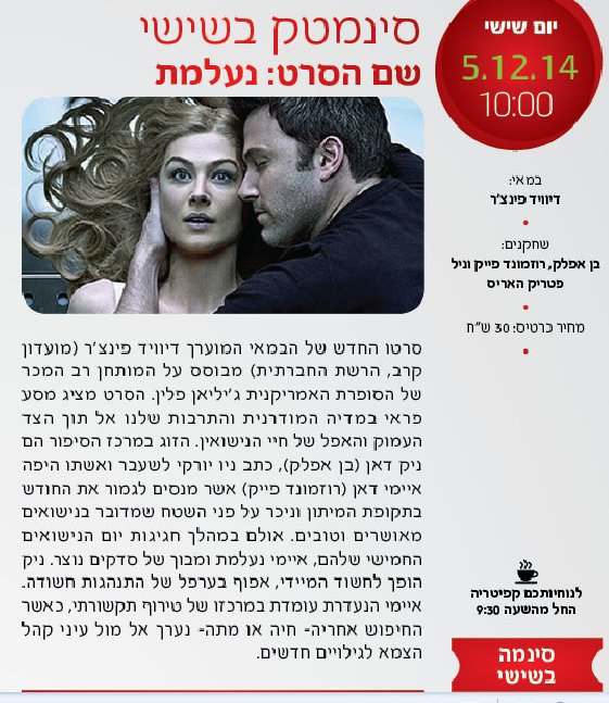 סינמטק בשישי: נעלמת