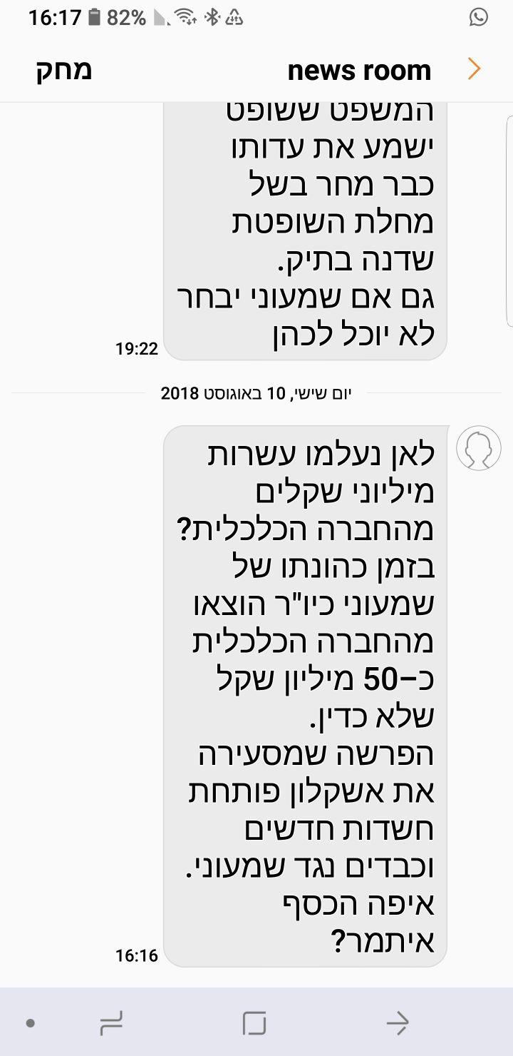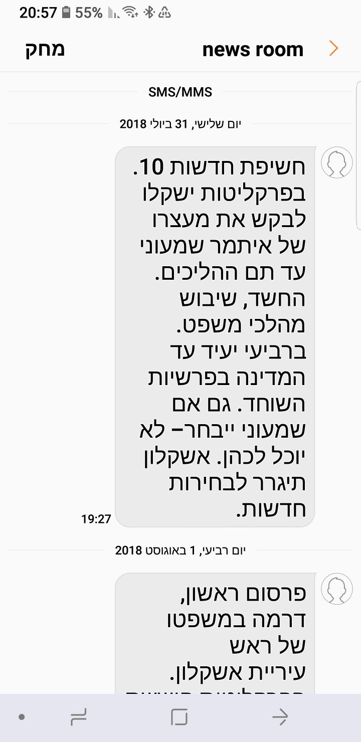 תלונה במשטרה על הפצת מסרונים נגד איתמר שמעוני