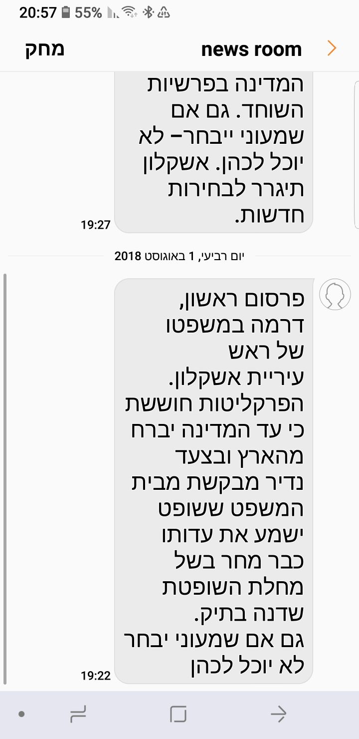 ראש מטה הבחירות של איתמר שמעוני, ריימן פולאט, הגיש בימים האחרונים תלונה למשטרת ישראל בעקבות הפצת שורה של מסרונים פיקטיביים שנשלחו לאלפי תושבים בעיר. כזכור, לפני כשבועיים הפיץ גורם אנונימי מספר הודעות SMS אשר מכילות מידע שקרי ומשולל כל יסוד, שמטרתן להכפיש את שמעוני ולהטעות את תושבי העיר, תוך שימוש בחדשות שקריות (“פייק ניוז”) על מנת לייצר מיצג שווא כאילו הדברים אמיתיים.