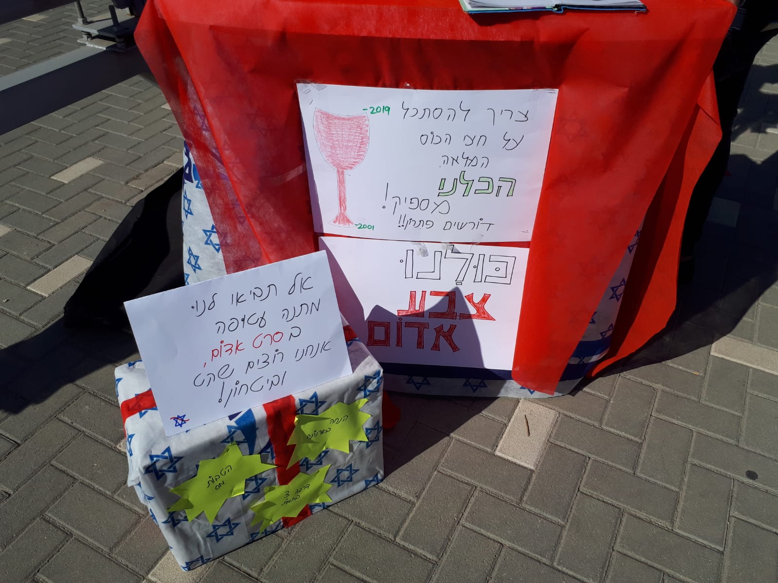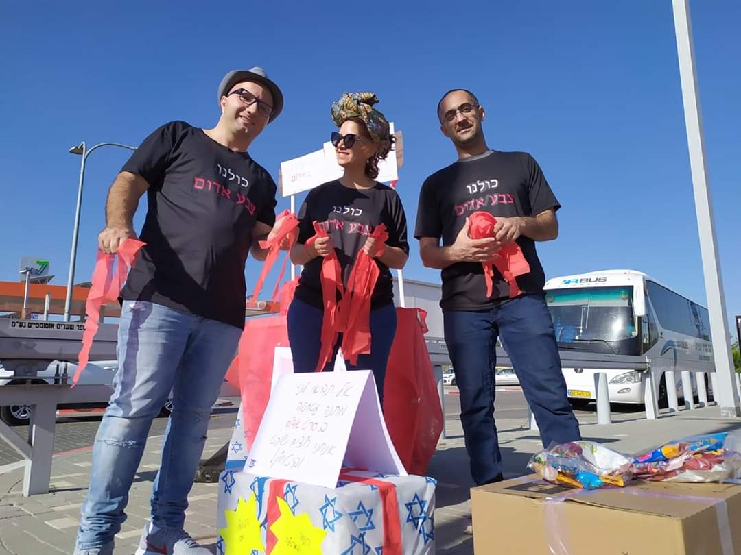 כחלק מהמחאה, ביום שישי האחרון חילקנו סרטים אדומים כהזדהות וסולידריות.