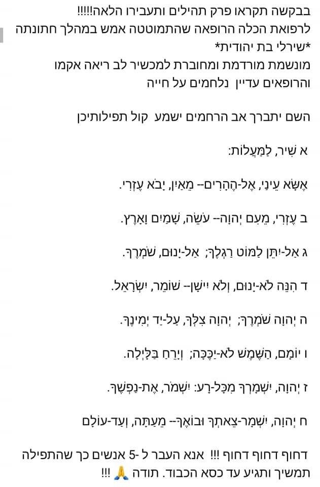 הצטרפו לתפילתנו - לשלומה של יקירתנו ❤❤❤❤❤