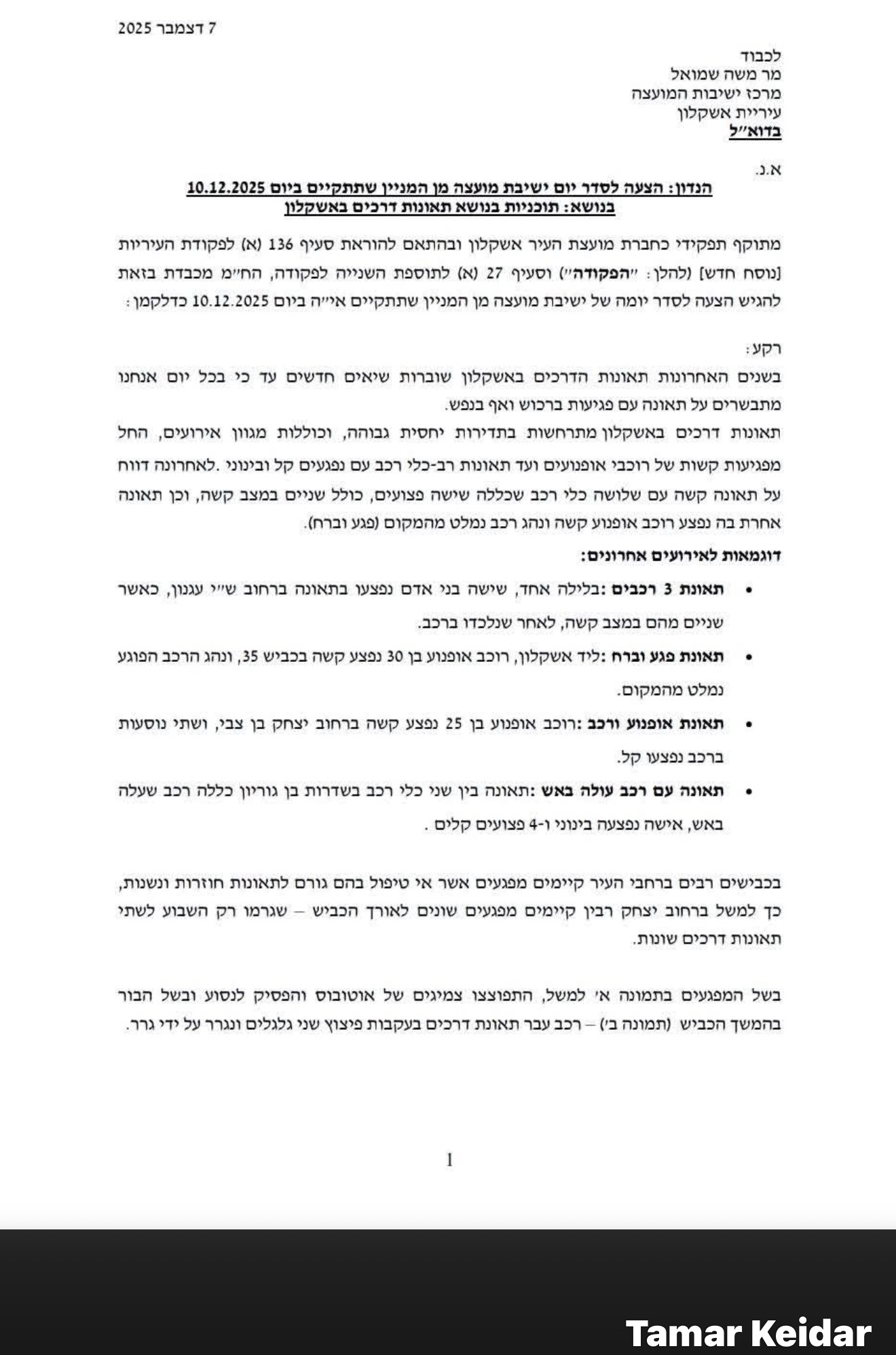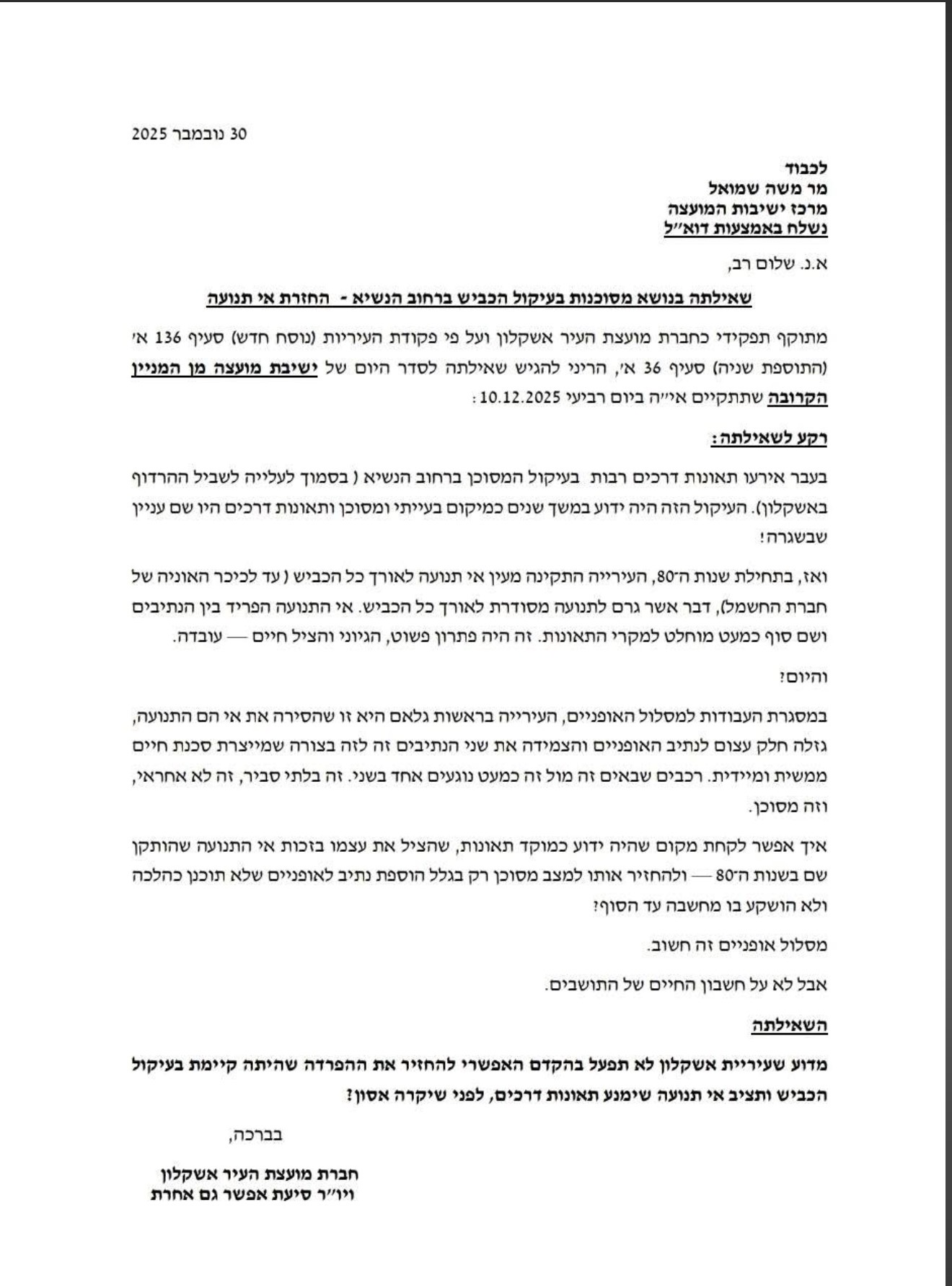 הגיע הזמן לעשות דברים אחרת, גם כדי לצמצם את תאונות הדרכים באשקלון .