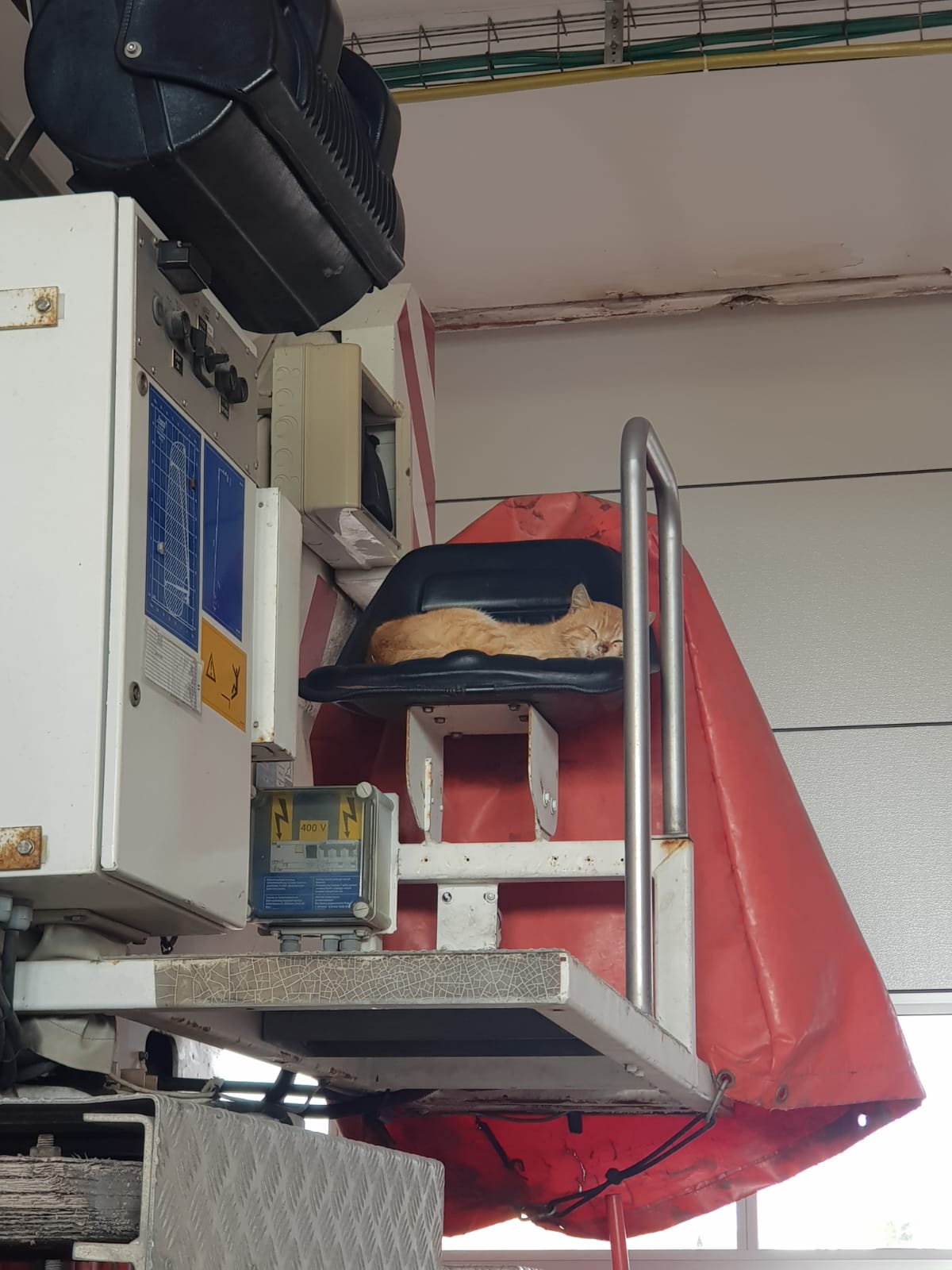 יש לציין שכבר באותו בוקר ציפתה ללוחמי האש הפתעה כאשר חתולה נמצאה ישנה על מנוף הגבהים של התחנה ושומרת עליו מכל משמר מן בוקר שכזה...