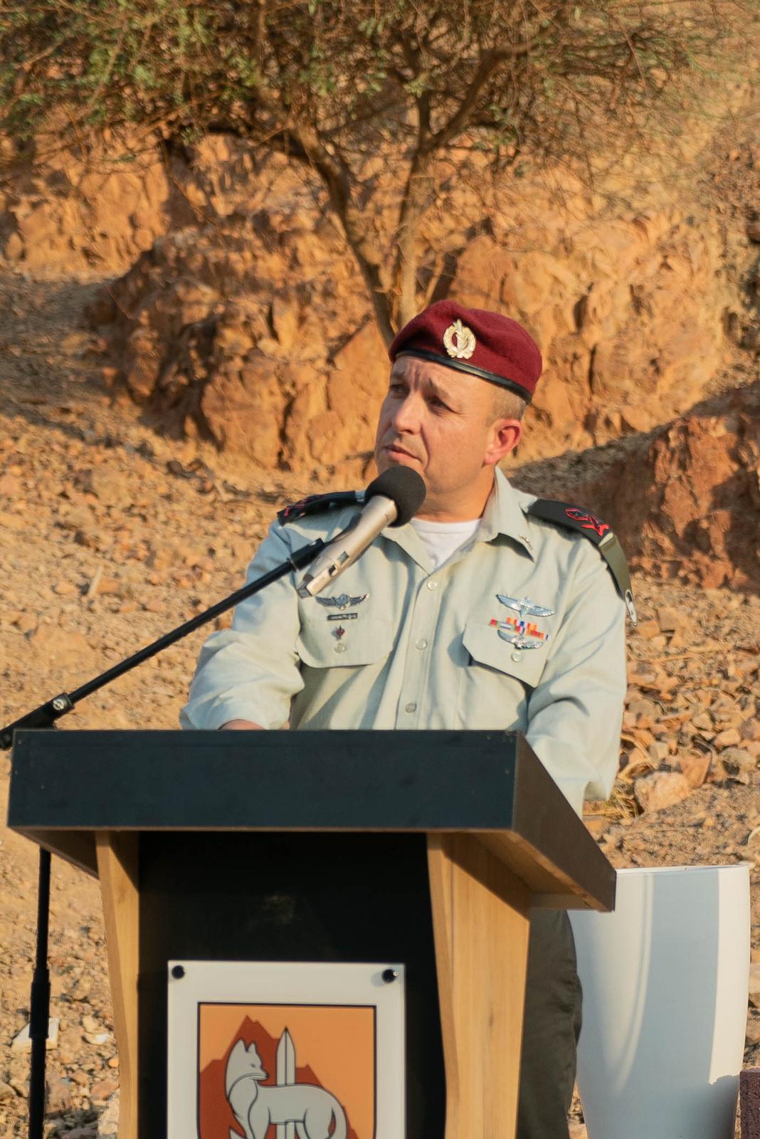 מדברי מפקד פיקוד הדרום, אלוף אליעזר טולדנו: "גור, אתה מסיים 27 שנים של שירות קרבי במגוון תפקידים שמתארים אותך טוב יותר מכל נאום. כאן, באוגדת 'אדום', נהנו מאדם במלוא מובן המילה, לוחם שמקצועו מבוסס על הערכים אותם ינק בנגב ועליהם חינך. ראית נכון את המצב ועידכנת את התפיסה המבצעית כך שהערבה והנגב ישגשגו ויצמחו. איציק היקר, גם אתה איש הדרום, גם אתה איש של אנשים, גם אתה איש של ערכים. אני סומך עליך ומשוכנע בהצלחתך