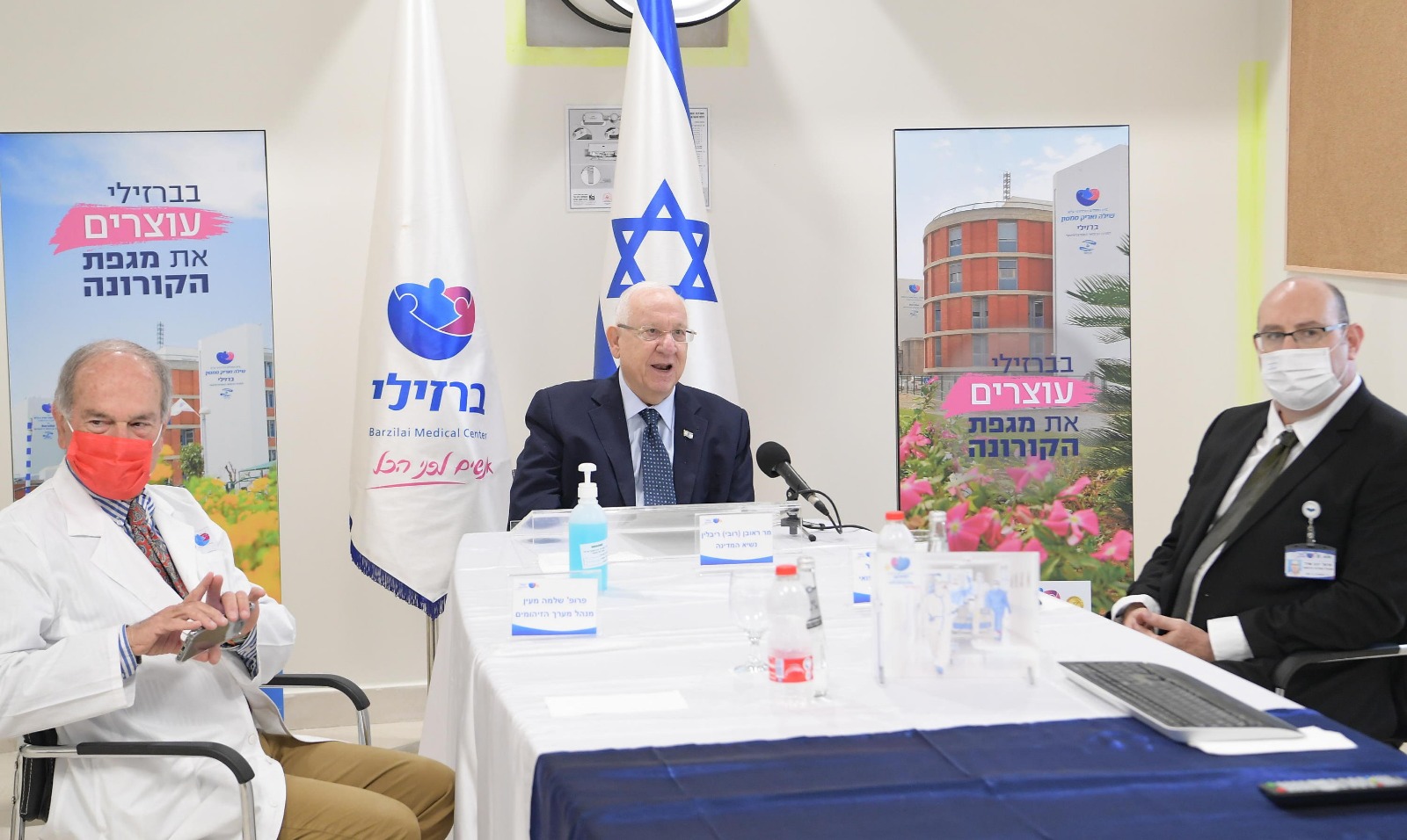 הנשיא חתם את דבריו והודה למרכז הרפואי ברזילי, לצוותים הרפואיים, הרופאים והאחיות, צוותי הסיעוד והצוותים הטכניים שעושים עבודת קודש יום וליל.