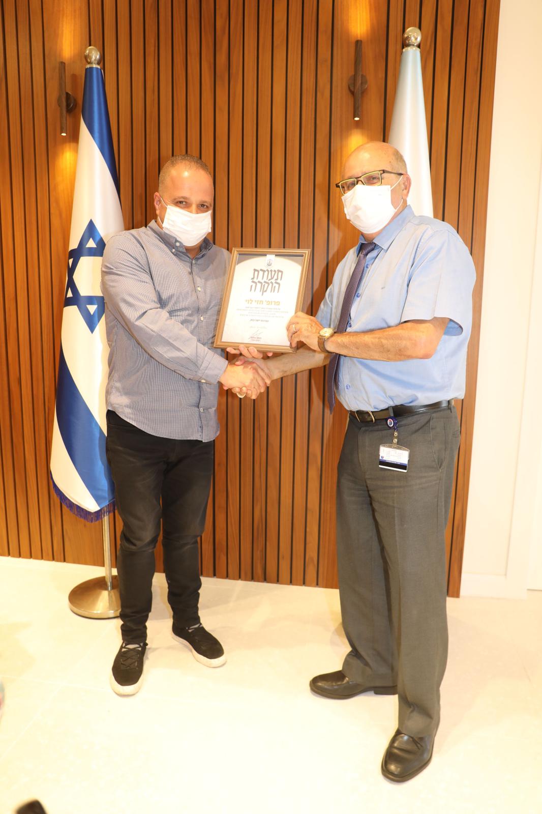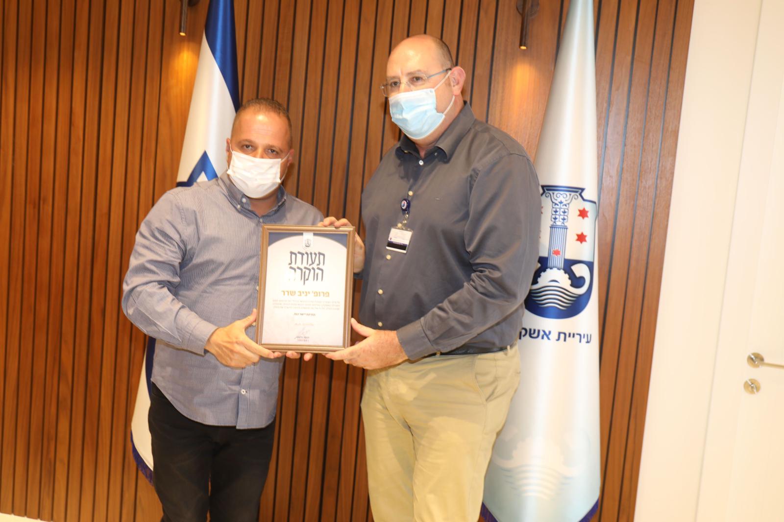 *תעודת הוקרה לפרופ' חזי לוי ופרופ' יניב שרר מטעם ראש העיר אשקלון תומר גלאם*