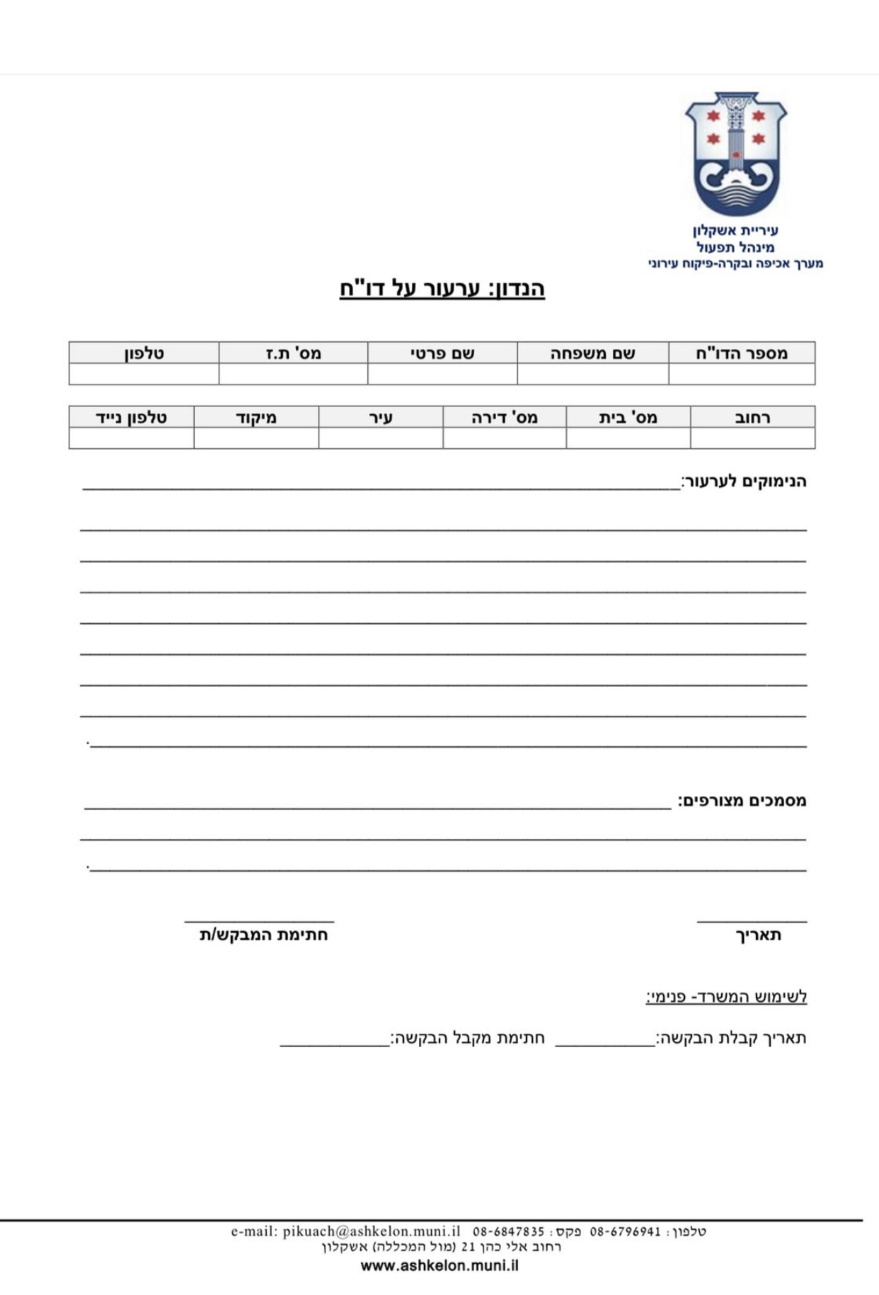 תושבים מאשקלון פנו למערכת ״אשקלון נט״ בבקשה לבדוק את נושא תפקוד מערכת האכיפה בעיר אשקלון . לטענתם, נפל פגם או טעות כלפיהם במתן דוחות וקנסות עירוניים על ידי פקחים של העירייה ומשום כך החליטו להגיש ערעור על קבלת הקנס. התושבים מדווחים כי זמני הטיפול בערעורים בלתי סבירים ולמעשה אינם מטופלים כלל ! יש להבין כך הם טוענים, שהיעדר מענה מצד התביעה העירונית תוך פרק זמן סביר, מוביל אותם בהכרח לבית המשפט ועלול לגרום להם להוצאות גדולות ובעיקר מיותרות ! בכל פניותיהם לפיקוח העירוני, מתקבלת אותה התשובה ״ עדיין אין תשובה והנושא בטיפול״ . אחד התושבים סיפר כי זה מצביע על חוסר תפקוד העירייה, לא ייתכן שאת הקנס יודעים לתת ולעומת זאת פתרון לטעויות במתן הקנס לא יודעים לתת מענה, הסחבת היא בלתי נסבלת״
