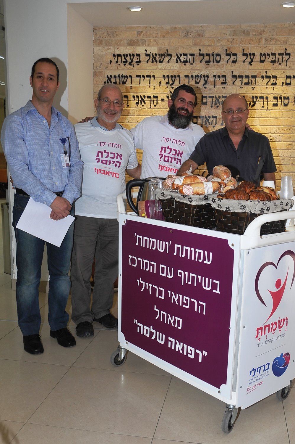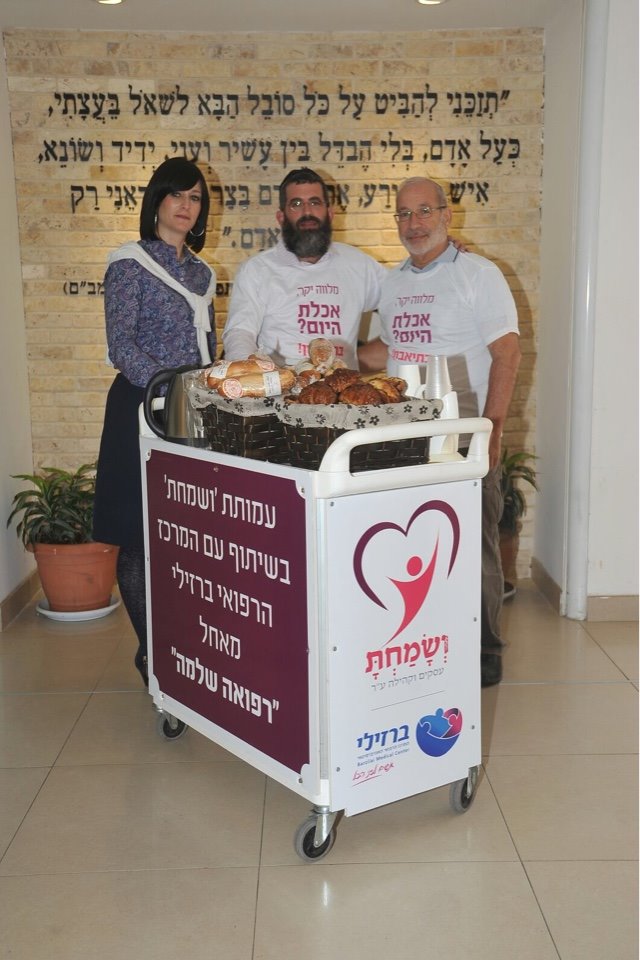 עמותת "ושמחת" בשיתוף עם המרכז הרפואי ברזילי החל היום במיזם התנדבותי של חלוקת כריכים, עוגיות ושתיה חמה למלווים ובני משפחותיהם המאושפזים במחלקות בית החולים.