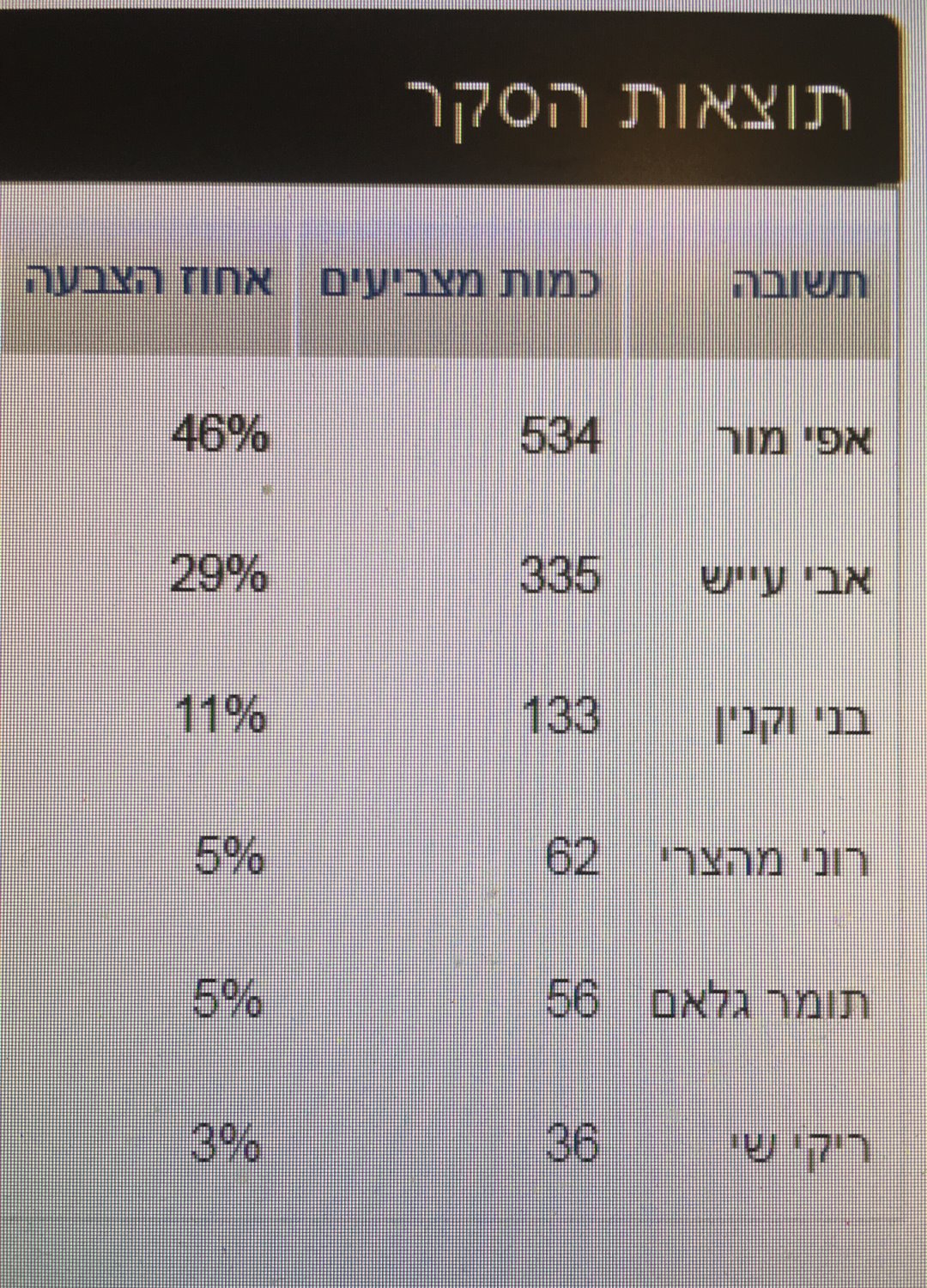 אפי מור זוכה ב - 46% שהם 534 מצביעים