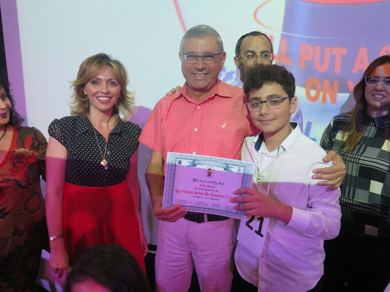 הרב יעקב אביטן, הממונה על החינוך בירך את המתחרים; " אני שמח לקחת חלק בתחרות האיות הראשונה מסוגה בעיר. זו יוזמה מבורכת לעידוד הלמידה של השפה האנגלית.ישר כח למורה לאנגלית הגברת תמרה מירל ולחברת המועצה, מיריי אלטיט, על התמיכה והעידוד שהעניקה ליוזמה של הגברת מירל. תודה למפקחת על האנגלית במחוז דרום. לגברת עדנה אברהמי ולמר יצחק בריגה.