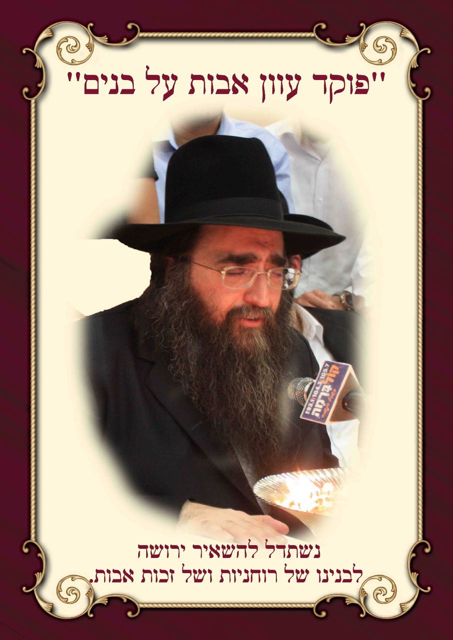 נשתדל בכל כוחנו לשמור על מעשינו ועל דרכינו, שלא ח"ו נשאיר ירושה לבנינו של התמודדויות וקשיים וצער, אלא ירושה של רוחניות של זכות אבות, ושל "לא ימוש מפיך ומפי זרעך עד עולם".